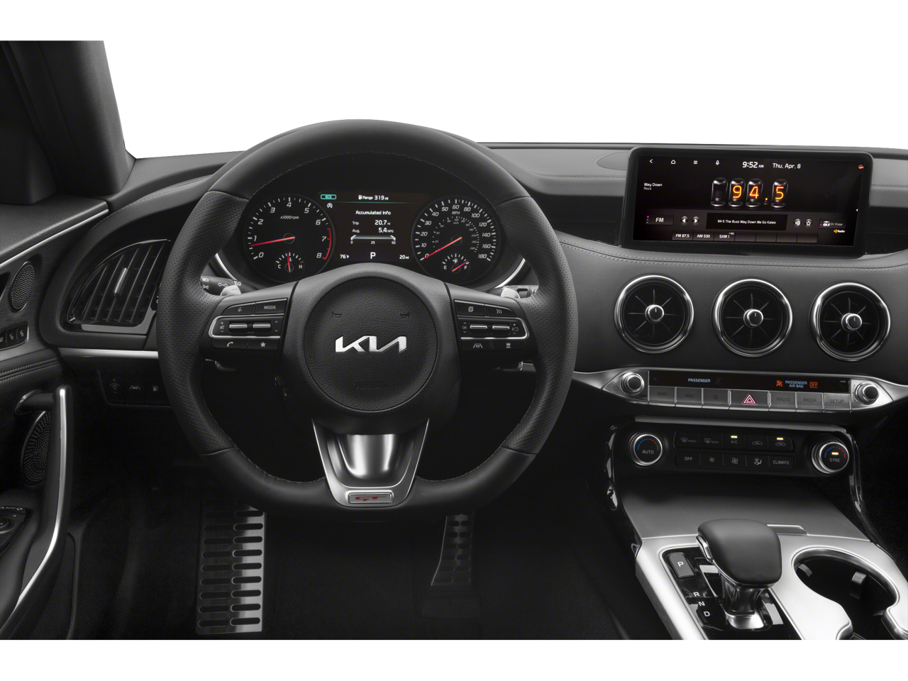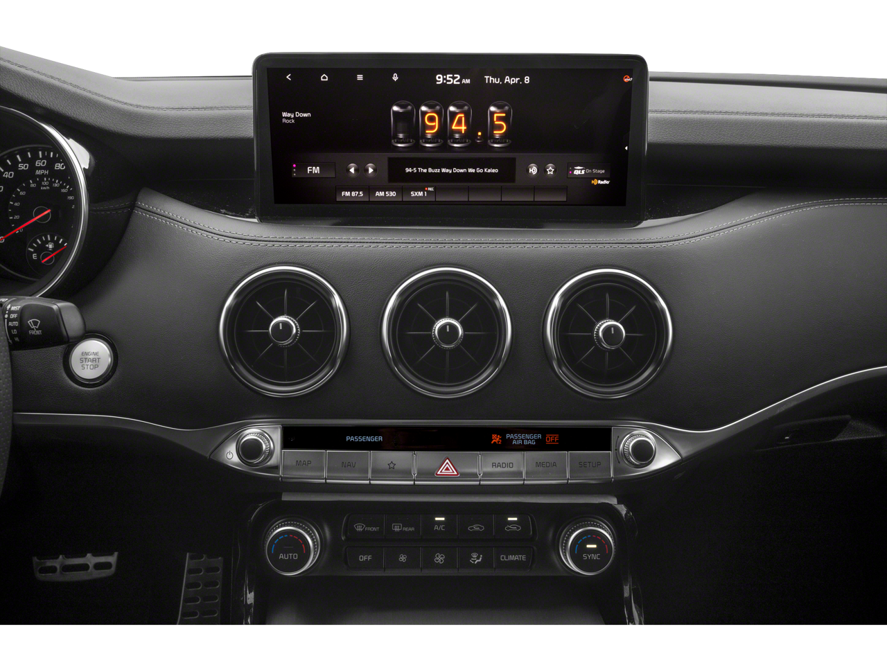 - Radio: AM/FM/MP3/HD Audio System -inc: navigation system w/10.25" touchscreen color display, 9-Speakers, external amp, USB input, Android Auto/Apple CarPlay smartphone integration, Bluetooth wireless connectivity w/voice recognition, steering-wheel-mounted controls, SiriusXM satellite radio and UVO Link